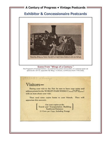 A Century of Progress %u2022 Vintage PostcardsExhibitor & Concessionaire PostcardsScene From %u201cWings of a Century.%u201dThe Pageant of Transportation%u2014Acclaimed by press and public%u2014A colossal open-air spectacle. 33rd St. opposite T&T Bldg.%u20143 shows, continuous from 7 PM Daily.