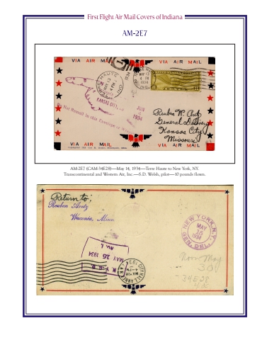 AM-2E7 (CAM-34E28)%u2014%u2014May 14, 1934%u2014%u2014Terre Haute to New York, NY.Transcontinental and Western Air, Inc.%u2014%u2014S.D. Welsh, pilot%u2014%u201410 pounds flown.