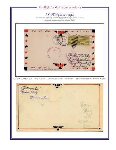 This collection primarily consists of flights that originated in Indiana, but this is an example of an inbound flight.AM-2E9f (CAM-34W29%u2014%u2014May 14, 1934%u2014%u2014Kansas City, MO to Terre Haute%u2014%u2014Transcontinental and Western Air, Inc.