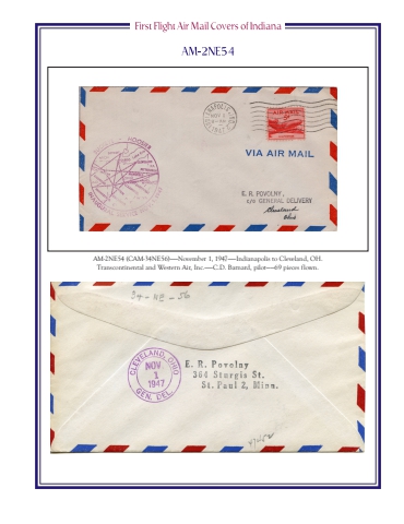 AM-2NE54 (CAM-34NE56)%u2014%u2014November 1, 1947%u2014%u2014Indianapolis to Cleveland, OH.Transcontinental and Western Air, Inc.%u2014%u2014C.D. Barnard, pilot%u2014%u201469 pieces flown.