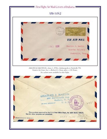 AM-10S2 (CAM-30S12)%u2014%u2014June 1, 1934%u2014%u2014Indianapolis to Nashville TN.Eastern Air Lines, Inc.%u2014%u2014Robert G. Chew, pilot.%u2014%u201413# flown.No cachets were available for this flight.