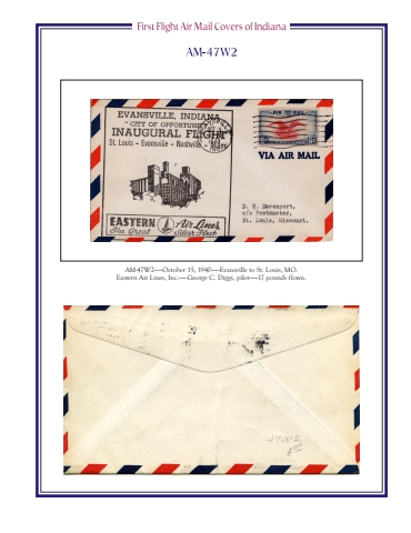 AM-47W2%u2014%u2014October 15, 1940%u2014%u2014Evansville to St. Louis, MO.Eastern Air Lines, Inc.%u2014%u2014George C. Diggs, pilot%u2014%u201417 pounds flown.