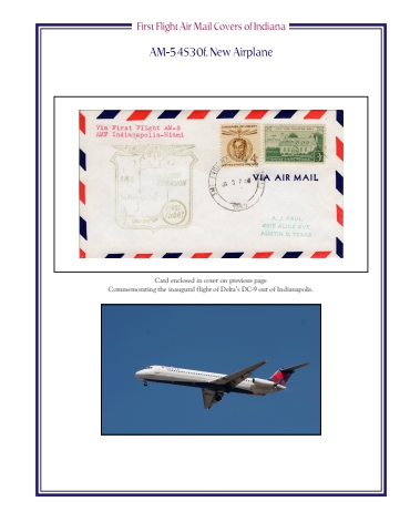 Card enclosed in cover on previous pageCommemorating the inaugural flight of Delta%u2019s DC-9 out of Indianapolis.