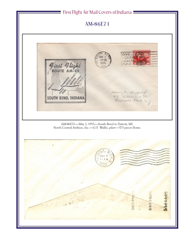AM-86E71%u2014%u2014May 1, 1955%u2014%u2014South Bend to Detroit, MI.North Central Airlines, Inc.%u2014%u2014G.F. Wallis, pilot%u2014%u2014373 pieces flown.