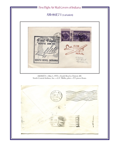 AM-86E71%u2014%u2014May 1, 1955%u2014%u2014South Bend to Detroit, MI.North Central Airlines, Inc.%u2014%u2014G.F. Wallis, pilot%u2014%u2014373 pieces flown.