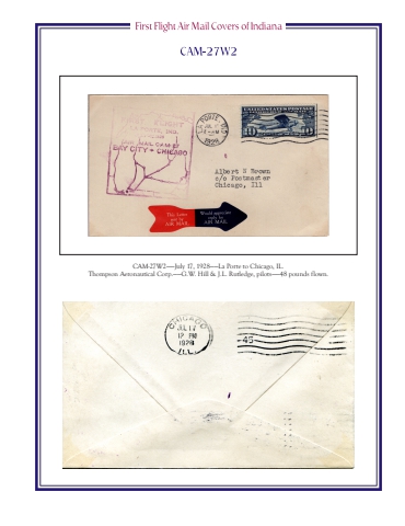CAM-27W2%u2014%u2014July 17, 1928%u2014%u2014La Porte to Chicago, IL.Thompson Aeronautical Corp.%u2014%u2014G.W. Hill & J.L. Rutledge, pilots%u2014%u201448 pounds flown.