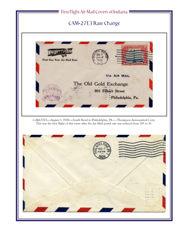 CAM-27E3%u2014%u2014August 1, 1928%u2014%u2014South Bend to Philadelphia, PA.%u2014%u2014Thompson Aeronautical Corp. This was the first flight of this route after the Air Mail postal rate was reduced from 10%u00a2 to 5%u00a2.