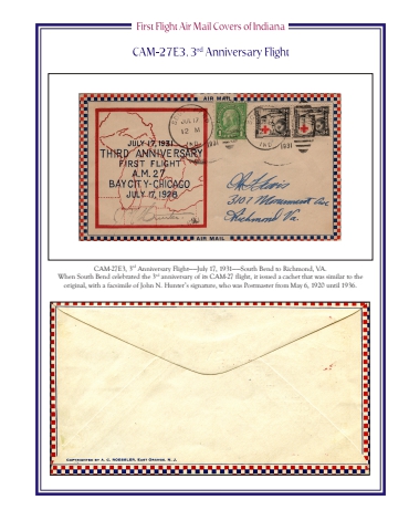 CAM-27E3, 3rd Anniversary Flight%u2014%u2014July 17, 1931%u2014%u2014South Bend to Richmond, VA.When South Bend celebrated the 3rd anniversary of its CAM-27 flight, it issued a cachet that was similar to the original, with a facsimile of John N. Hunter%u2019s signature, who was Postmaster from May 6, 1920 until 1936.