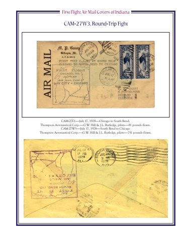 CAM-27E1%u2014%u2014July 17, 1928%u2014%u2014Chicago to South Bend.Thompson Aeronautical Corp.%u2014%u2014G.W. Hill & J.L. Rutledge, pilots%u2014%u201481 pounds flown.CAM-27W3%u2014%u2014July 17, 1928%u2014%u2014South Bend to ChicagoThompson Aeronautical Corp.%u2014%u2014G.W. Hill & J.L. Rutledge, pilots%u2014%u2014751 pounds flown.