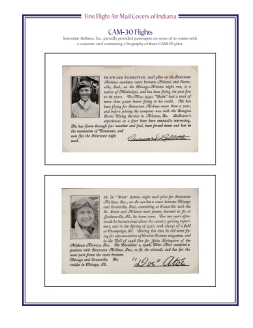 Interstate Airlines, Inc. proudly provided passengers on some of its routes with a souvenir card containing a biography of their CAM-30 pilot.