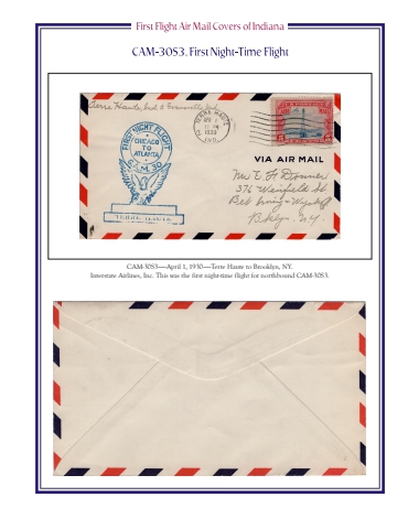 CAM-30S3%u2014%u2014April 1, 1930%u2014%u2014Terre Haute to Brooklyn, NY.Interstate Airlines, Inc. This was the first night-time flight for northbound CAM-30S3.